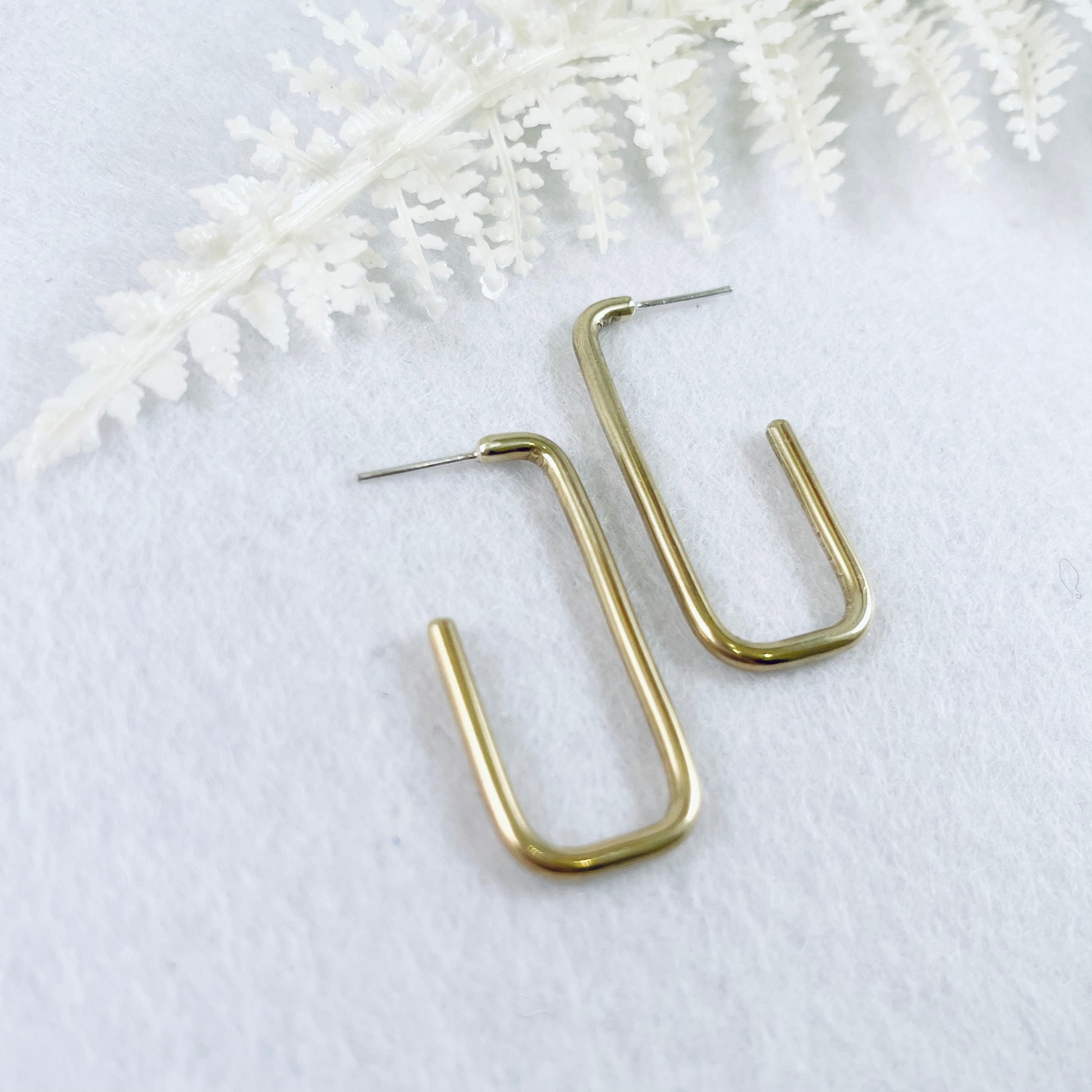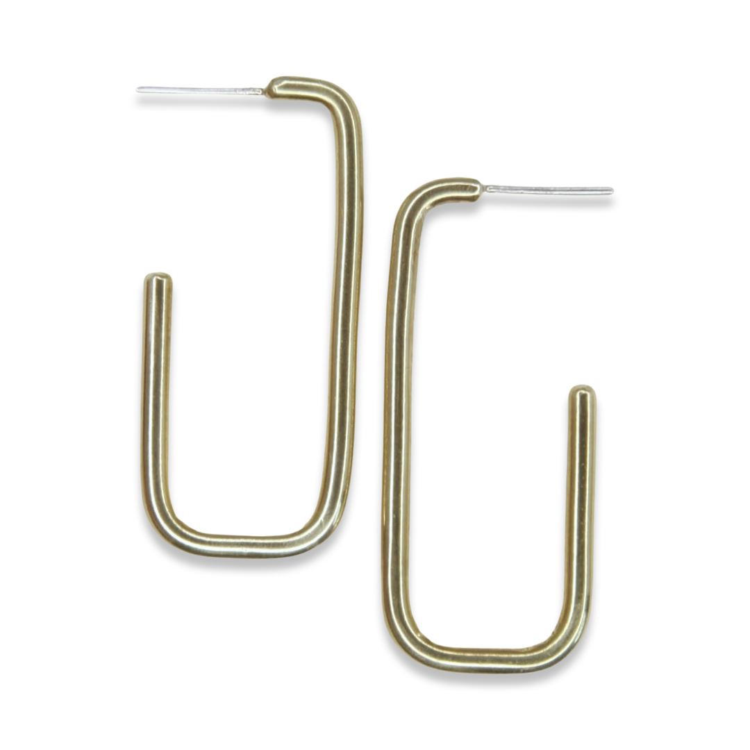 These brass post earrings will no doubt be your daily go to pair. It's a pair of rectangle hoop earrings. Wear it with the matching Carree chain or your favorite necklace. It's a minimal piece designed to go with any wardrobe on any occasion. Treat yourself to a pair or make it the perfect gift for best friend!