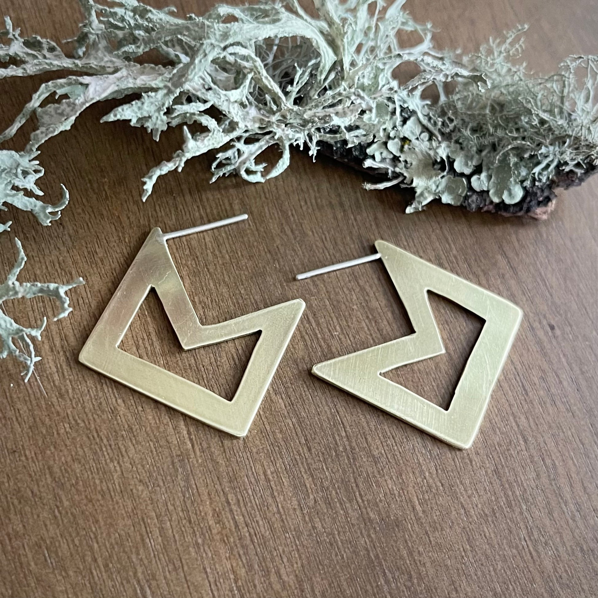 These geometric inspired brass earrings are made with high quality brass. A minimal design for a simple, yet catchy pattern.