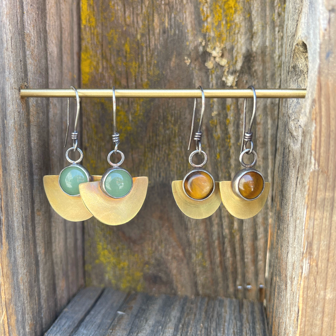 These sunset earrings are part of my Sunset collection and is the last earring from the collection. This minimal design is just what you are looking for. It is set with a tiger eye stone and have some healing powers. ✨